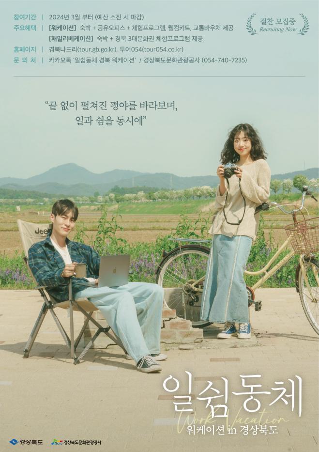 카카오톡 채널 '일쉼동체 경북 워케이션' 또는 경상북도문화관광공사 디지털혁신팀 (054-740-7235)