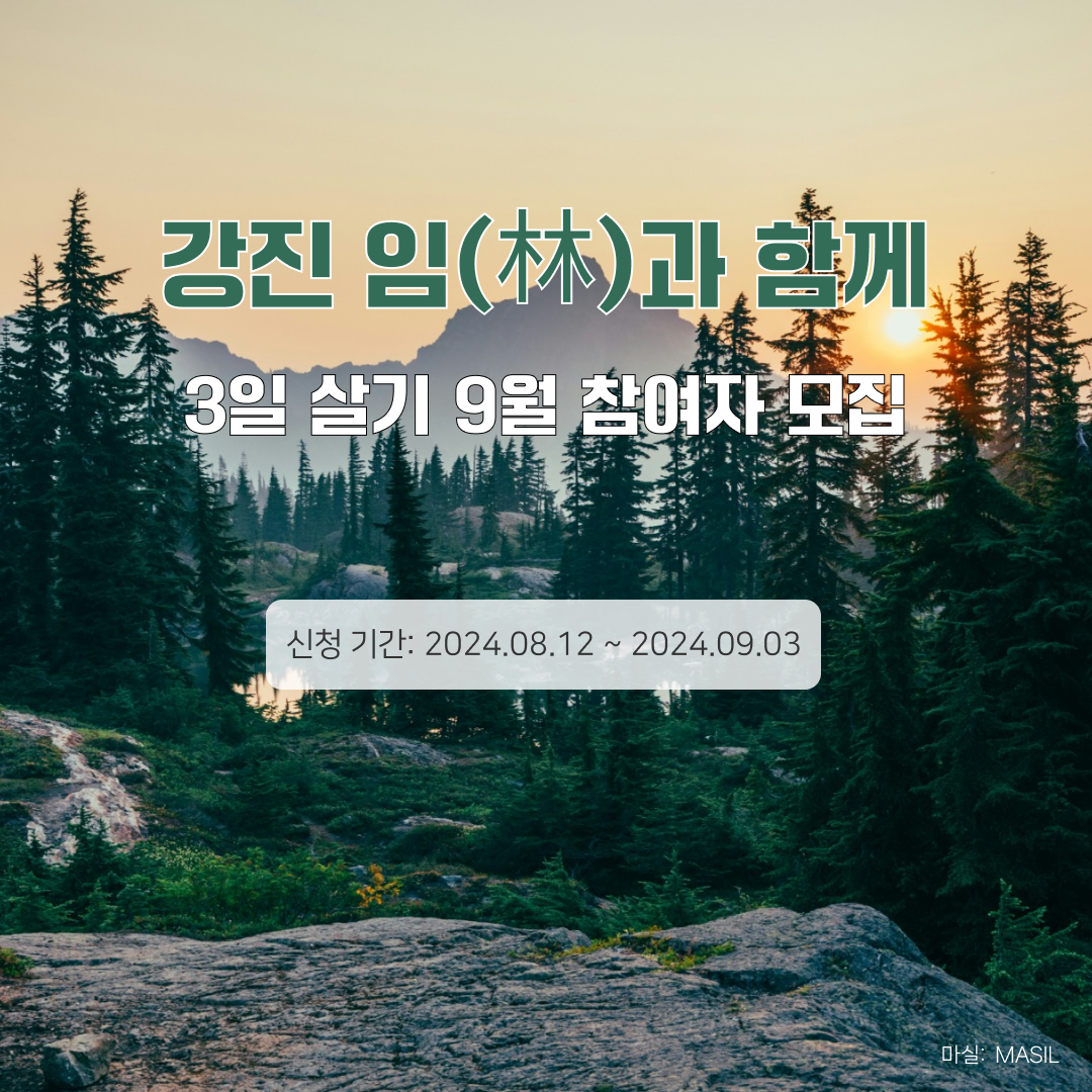 ▶ 신청문의 : 강진군 산림과 산림휴양팀 / 061-430-3256 / kimhyun55@korea.kr